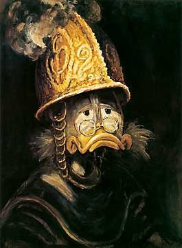 Carte d'Art: Die Duckomenta © "Der echte Mann mit dem Goldhelm" 11 x 15