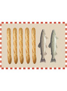 Carte Religieuse Evangile Cinq Pains Deux Poissons