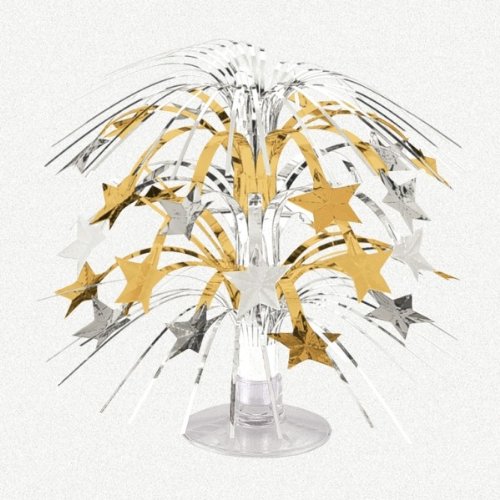 Cascade Etoile Or et Argent à l'unité Placée au centre de la table, cette cascade or ornée d'étoiles est une décoration parfaite pour vos réceptions. Dimension 21 cm.